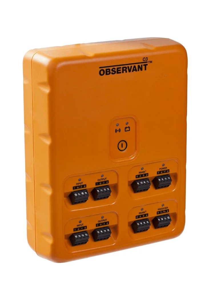 The Observant C3 is a self-contained battery and solar powered wireless sensing and control platform predominately for usage in the agricultural industry. It was designed to handle harsh environments, operate with limited power and with little service or installation input. The C3 works in conjunction with a number of third party sensing devices (eg. soil moisture and weather sensors) and a cloud based software suite to deliver near-real-time and historical data to the user.